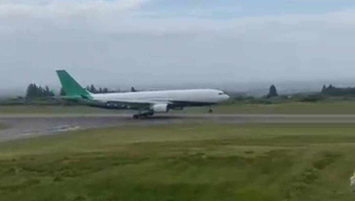 The Eva Air Airbus A330 landed in the West of Ireland after a 10,000km journey. Footage from: Ireland West Airport Knock