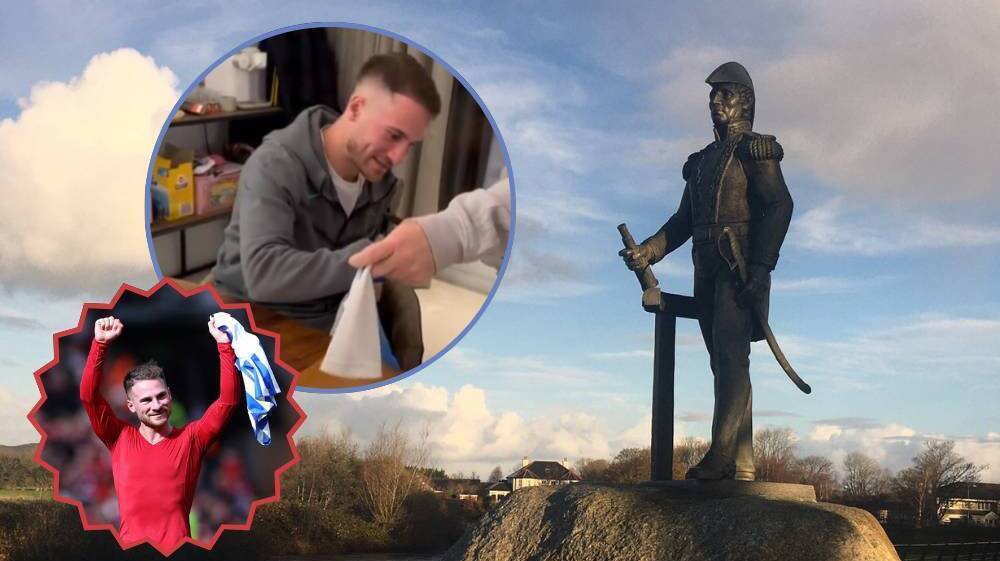 Admiral William Brown Statue in Foxford - image credit: Mayo North Tourism / Screenshot of Alexis Mac Allister from: Admiral William Brown 'X' profile / Alexis Mac Allister of Liverpool. Pic: Alex Livesey, Getty Images.