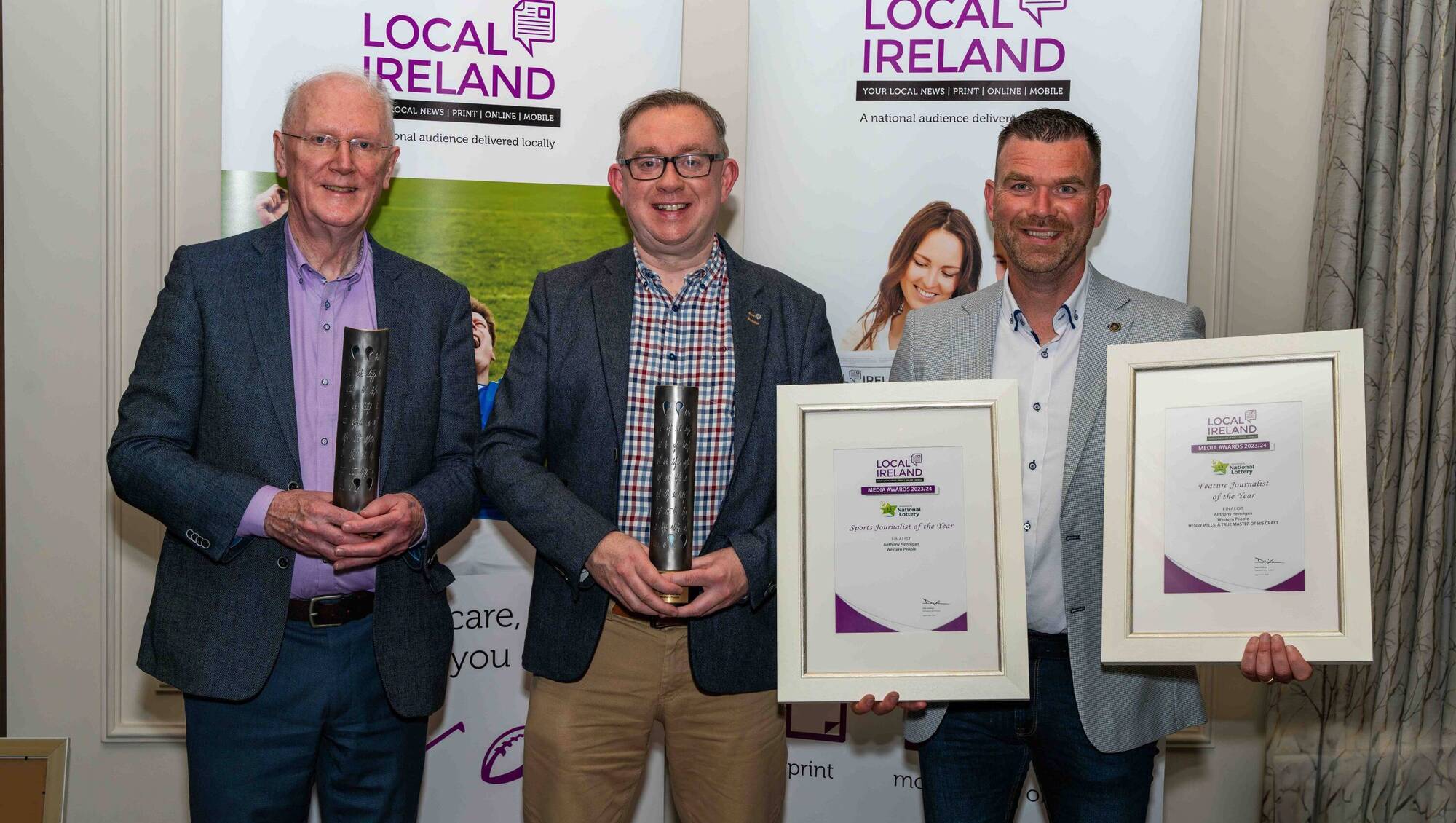 Pictured at the Local Ireland Media Awards were, from left: Fr Brendan Hoban, Columnist of the Year; James Laffey, Editor, Western People; Anthony Hennigan, Deputy Editor, Western People.