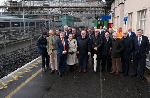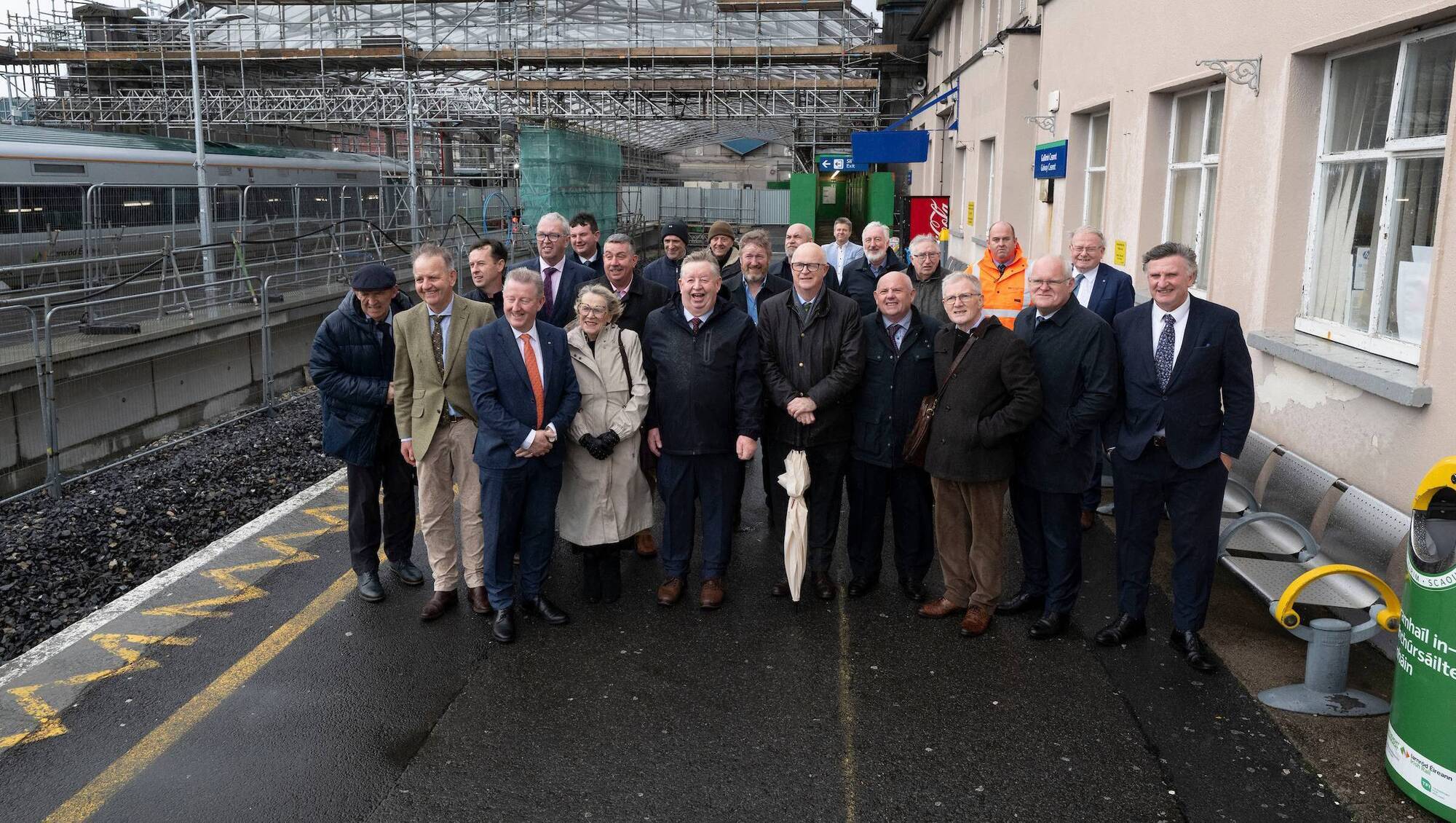 Minister Sean Canny at Ceannt Station in Galway with members of the Western Inter-County Railway Committee.