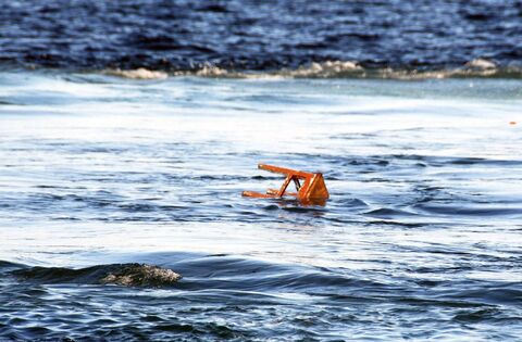 A chair rises up from the depths just after the MV Shingle sinks into Killala Bay. Picture: John O'Grady