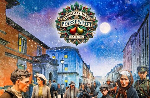 Conor McGuire's wonderful illustration of Pearse Street in Ballina a century ago, which features on the front cover of this year's Western Star.