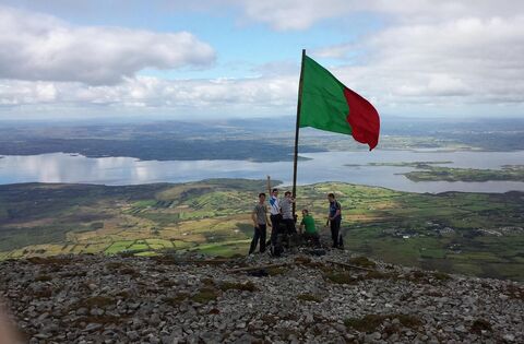 Mayo football fans raise a giant flag on top of majestic Nephin ahead of the All-Ireland Senior Football Final in 2013.