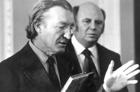 Mayo-born journalist John Healy (right) with the then Taoiseach Charles J Haughey in 1979.