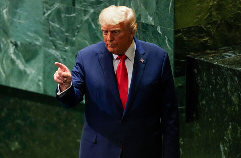 US President Donald Trump motions as he leaves after addressing the 80th session of the United Nations General Assembly last month. Picture: AP Photo/Yuki Iwamura