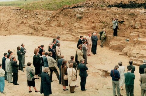 Archaeologist Dr Mathias Schouten speaking at the official launch of Bord Failte's 'Ireland Naturally' campaign at the prehistoric Ceide Fields site near Ballycastle in the 1990s.