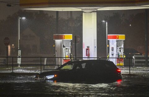 A vehicle is stranded outside a filling station on a water-flooded street in Brandon, Florida, after Hurricane Milton made landfall last Wednesday. Picture: Miguel J. Rodriguez Carrillo/AFP via Getty Images