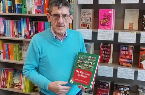 Máirtín G. Ó Maicín is pictured in the Castle Bookshop in Castlebar with his new book, 'On This Day in Mayo'.