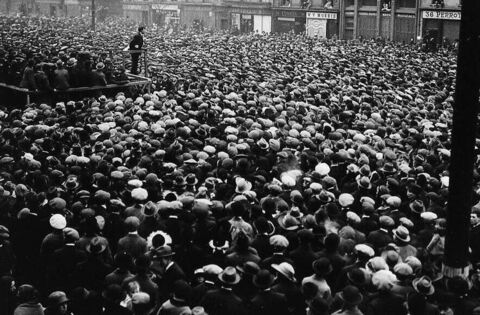 Irish nationalist Michael Collins speaking from a platform on Grand Parade in Cork in March 1922 to an estimated crowd of 50,000 people as he canvassed support for the Anglo-Irish Treaty.
