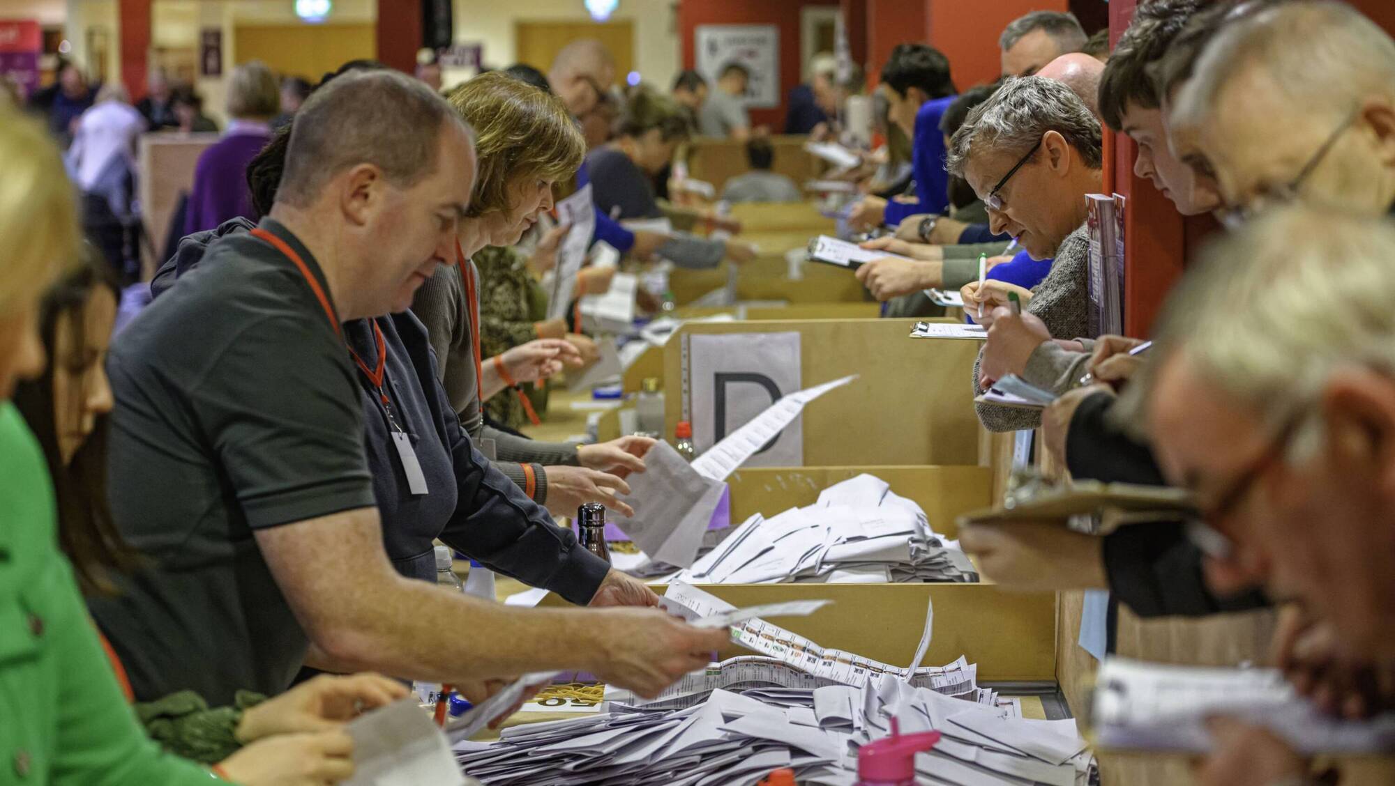 Counting ballot papers for the Mayo constituency at the TF Royal Theatre during last year's general election. It has been revealed that there are major discrepancies on the electoral register in many counties, including Mayo. Picture: Michael McLaughlin