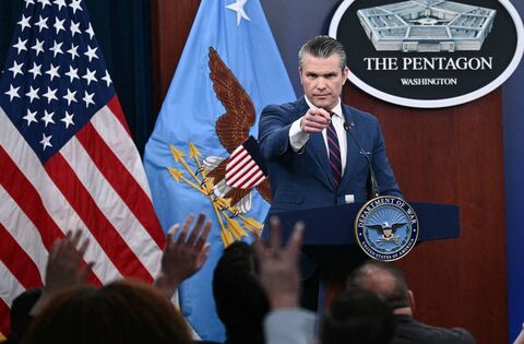 US Defense Secretary Pete Hegseth speaks during a press conference on US military action in Iran. Picture: Brendan Smialowski/AFP via Getty Images