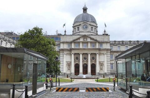 7th July 2023, Dublin Ireland. Government Buildings (the Irish Dail) on Kildare Street with security barrier raised.