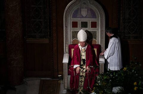 Cardinal Vincent Nichols officiates at the Requiem Mass at Westminster Cathedral in London on April 21 last following the news of the death of Pope Francis. Picture: Henry Nicholls/AFP via Getty Images