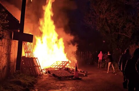 The latest flashpoint erupted in the village of Newtownmountkennedy in County Wicklow, where a crowd of protestors clashed violently with Gardaí amid chants of "shame on you" reverberating through the night air. Footage captured the ugly scenes of pepper spray dispersing through the crowd, protestors being shoved to the ground, and flames leaping in the background from makeshift bonfires.