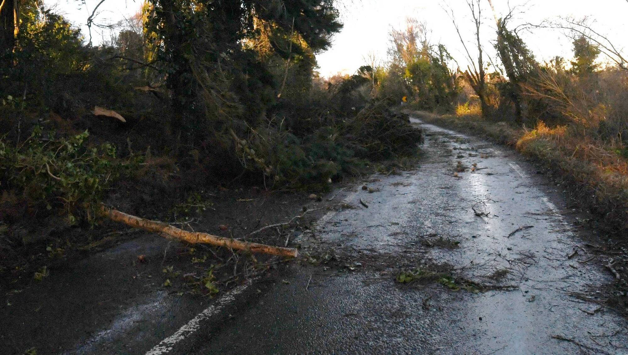 Debris from fallen trees made driving conditions on the Ballina to Pontoon road almost impossible due to the hurricane force Storm Éowyn. Picture: David Farrell Photography