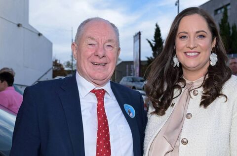 Fine Gael's new TD in Mayo Keira Keogh pictured with her predecessor and mentor Michael Ring outside the TF Royal Theatre in Castlebar last Sunday. Picture: John Corless