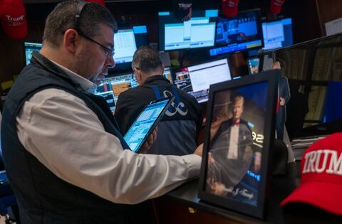 Traders working on the floor of the New York Stock Exchange last week as the main indices see-sawed dramatically as a result of US President Donald Trump's tariff policy. Picture: Spencer Platt/Getty Images