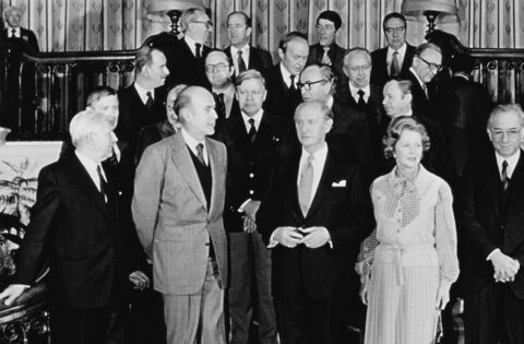 European leaders at a European Economic Community (EEC) summit in Dublin in December 1979, hosted by then Taoiseach Jack Lynch. Included are French President Valery Giscard d'Estaing, British Prime Minister Margaret Thatcher, Italian Prime Minister Francesco Cossiga, German Chancellor Helmut Schmidt and President of the European Commission, Roy Jenkins. Picture: Keystone/Hulton Archive/Getty Images