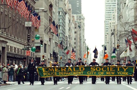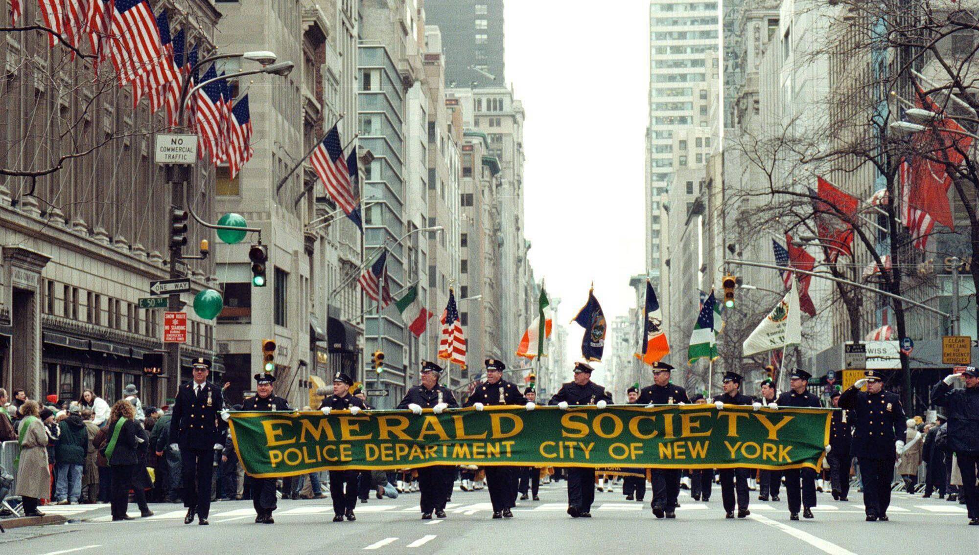 The New York Police Department's Emerald Society marching up 5th Avenue during the 2000 St Patrick's Day parade in New York City. Picture: Getty Images