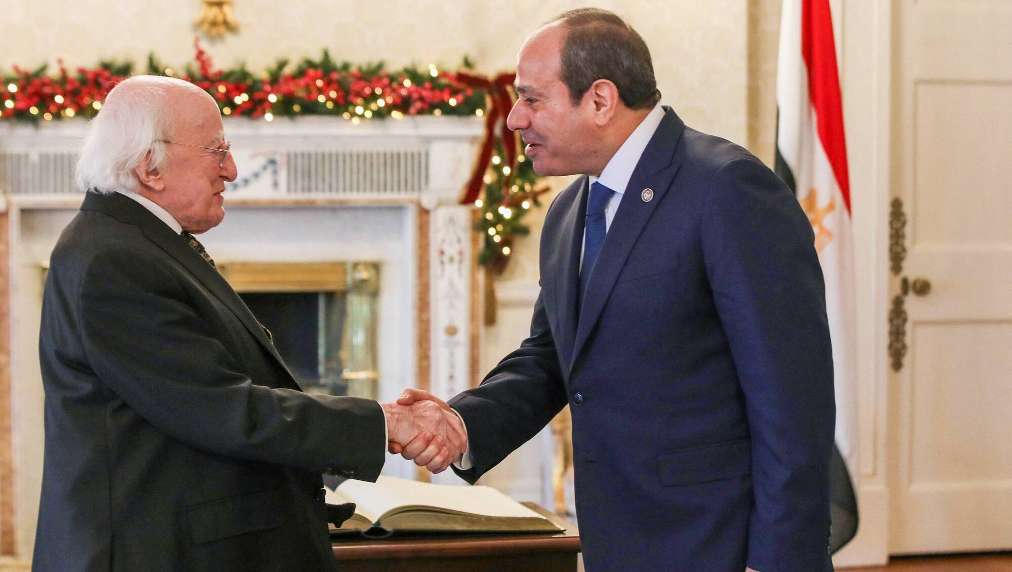 President Michael D Higgins last month welcomed Egypt's President Abdel Fattah el-Sisi to Aras an Uachtarain. Egypt has played a key role in brokering a ceasefire between Israel and Hamas. Picture: Paul Faith/AFP via Getty Images