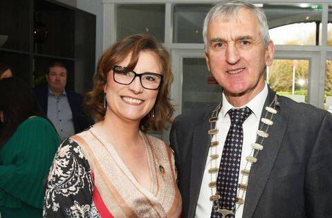 Mags Downey-Martin is pictured at the Mayo Business Awards 2023 in Great National Hotel Ballina with Cllr Martin McLoughlin, Leas Cathaoirleach of Mayo County Council. Picture: John O'Grady