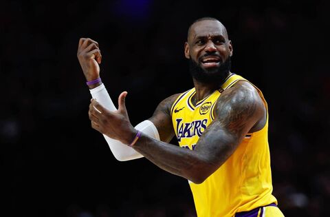 LeBron James of the Los Angeles Lakers gestures to the referee during the fourth quarter against the Portland Trail Blazers at Moda Center in Portland, Oregon, last Thursday. Picture: Alika Jenner/Getty Images