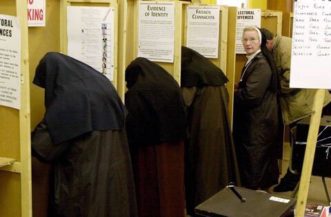 Nuns from the Carmelite Order in Dublin cast their votes during the general election in 2002. Picture: Joe Dunne/Getty Images