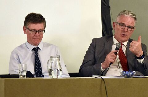 GAA Director General Tom Ryan and President Jarlath Burns at the special meeting of Mayo County Board in Knockranny House Hotel in Westport last week. Picture: Conor McKeown