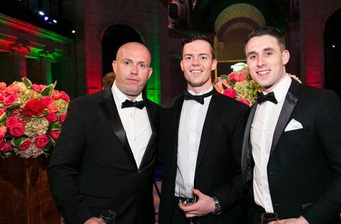 Tim O'Leary (left) with Mayo players Stephen Coen and Paddy Durcan at the Mayo GAA Foundation's gala fundraising dinner in New York in 2019.
