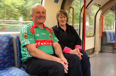 Mayo supporters James and Brigest Maree, from Willesden Junction, London and originally from Tourmakeady taking the London Underground on their way to Ruislip for the Green and Red's 2016 clash with London. Picture: Seb Daly/Sportsfile
