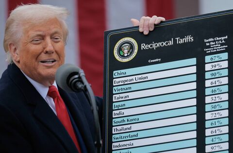US President Donald Trump announcing tariffs on foreign trading partners, including the European Union, in the Rose Garden at the White House last Wednesday. Picture: Chip Somodevilla/Getty Images