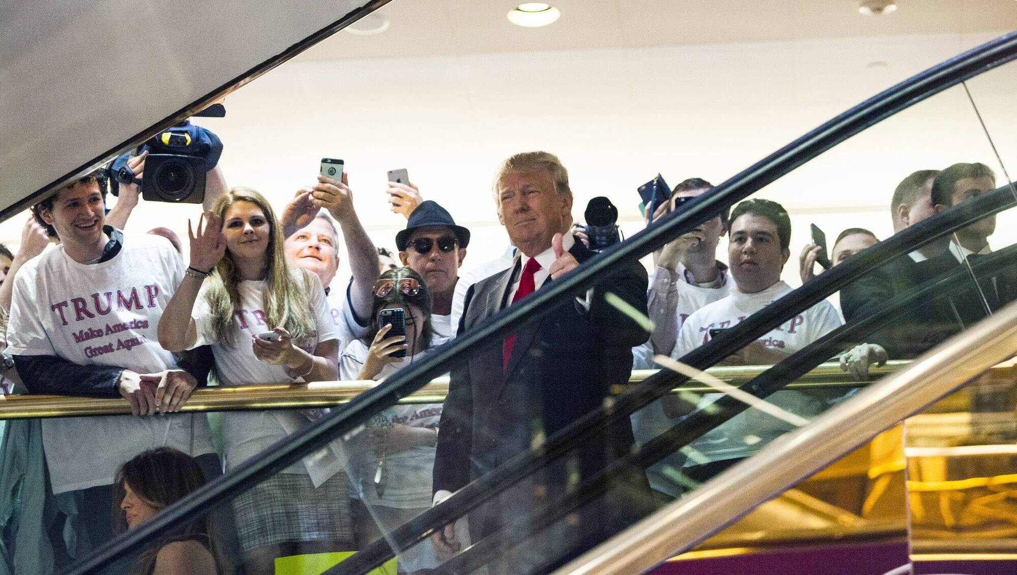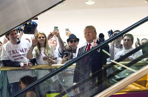 Donald Trump rides an escalator to a press event to announce his candidacy for the US presidency at Trump Tower on June 16, 2015, in New York City. Picture: Christopher Gregory/Getty Images