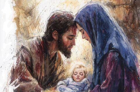 Joseph, drawn from his prayer by the Child's cry, approached with holy fear and overwhelming love warring in his heart. His steps were hesitant yet purposeful, like a man approaching sacred ground. At Mary's invitation, he took the newborn Jesus into his arms, his tears falling unashamed as he pressed the Baby to his chest, trying to warm Him with his own body heat and the rough fabric of his tunic. His whispered "My Lord and my God" was both prayer and proclamation, the words carrying all the weight of prophecy and promise.
