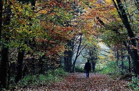 Remnants of autumn in Mayo - A lone walker in Belleek Woods, Ballina, embraces nature's autumnal colours as they still magically grace the landscape in the winter month of November. Pic Henry Wills, Western People. Fotoware