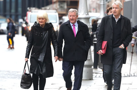Galway East TD Seán Canney (centre) arrives at Government Buildings on Friday with fellow Regional Independent TDs Marian Harkin and Michael Lowry ahead of negotiations between Fianna Fáil, Fine Gael and the Regional Independents to form the next government. Picture: Leah Farrell/©RollingNews.ie