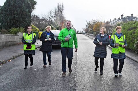 Minister of State Dara Calleary with his team of canvassers in The Glebe housing estate in Ballina last week. Picture: John O'Grady