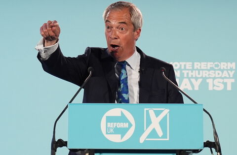 Reform UK party leader Nigel Farage speaking during a campaign event at last spring's local elections.