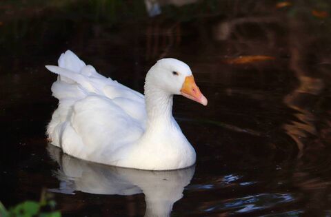 The ’common’ goose of farmyards and story books was, in most cases, the Embden breed. This is a white goose with relatively tight feathering, an erect stance, orange shanks, and an orange beak. Most strains of Embden geese can be sexed on the down colour of the goslings, as males are a lighter grey than females.