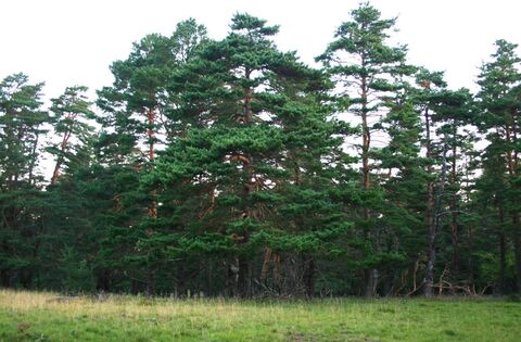 The Scots pine is an evergreen conifer native to northern Europe. Mature trees grow to 35m and can live for up to 700 years. The Scots pine has a distinctive orange-red bark and paired, blue-green needles. It grows in various soils, especially poor and dry ones, becoming a mature tree with a rounded, almost flat crown. Known for its straight trunk, it serves as vital habitat for wildlife, particularly the red squirrel.