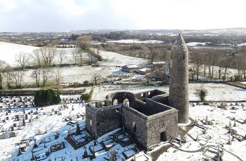 Turlough Round Tower and Church stands on the site of an early medieval monastery, believed to be founded by St Patrick. Picture: Jack Walsh Drone Photography