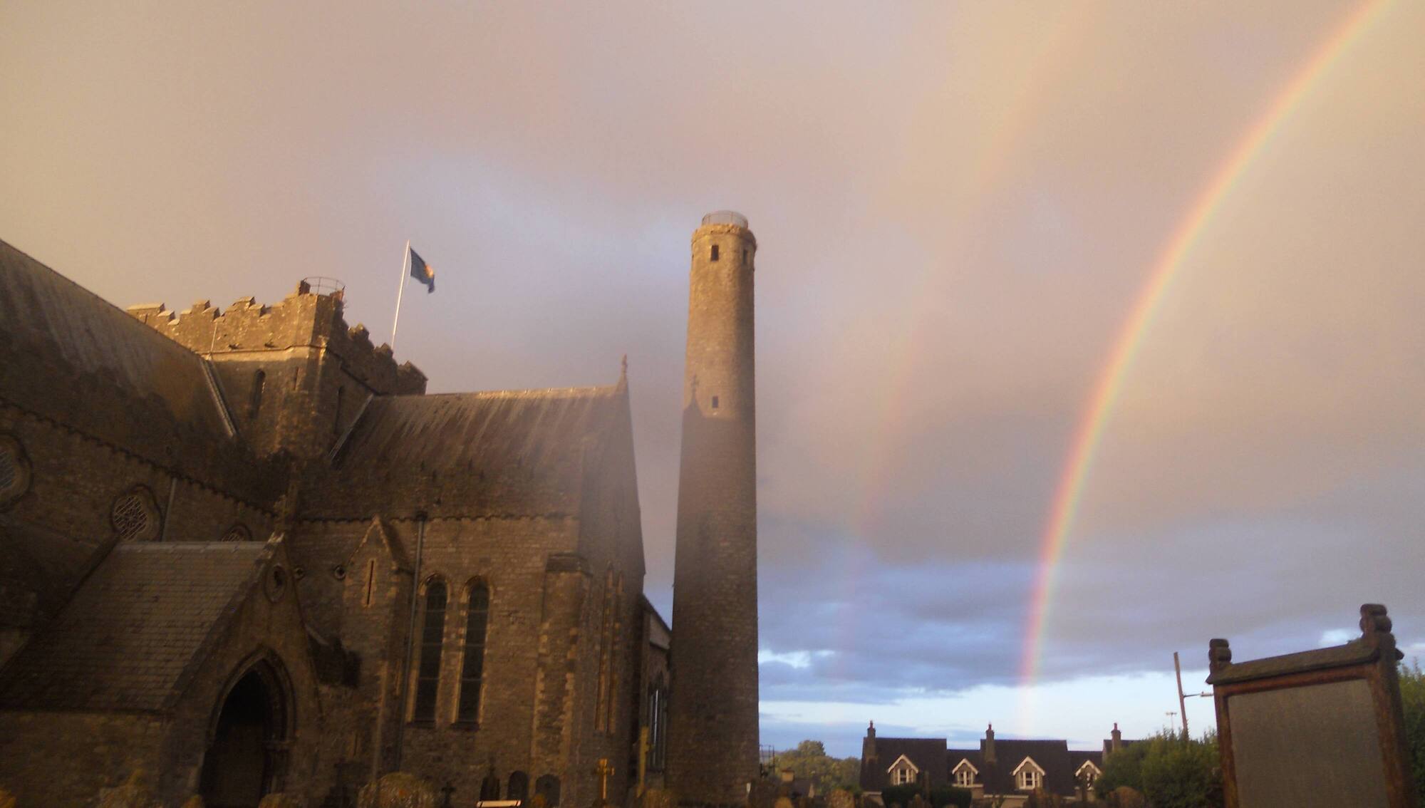 A rainbow forms a perfect backdrop at St Canice's Cathedral in Kilkenny. Picture: Rosaleen Crotty
