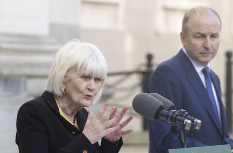 Minister of State at the Department of Further and Higher Education, Research, Innovation and Science Marian Harkin and Taoiseach Micheál Martin TD launching the 'Accelerating Infrastructure Report and Action Plan' at Government Buildings in Dublin last December. Picture: Sam Boal/Collins Photos
