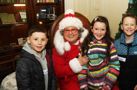 Luke Devers, Eve and Archie Williams and Mrs Claus at the launch of the Jackie Clarke Collection's festive programme. Picture: John O'Grady
