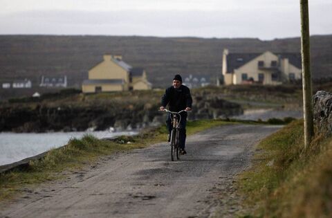 An islander cycles along a road on Inis Mor, the largest of the Aran Islands, in 2007. Picture: Matt Cardy/Getty Images