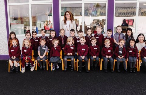 Junior Infants pupils at Balla National School are pictured on their first day at school. Picture: Kathy Lyons