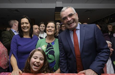 Dara Calleary with his wife Siobhan, mother-in-law Bridie Greavy and niece Anna Jenkins at the count centre for the Mayo constituency in the TF Royal Theatre in Castlebar after he was re-elected to Dáil Éireann last November. Picture: Michael McLaughlin