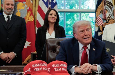 US President Donald Trump speaks to the media after signing another raft of executive orders in the Oval House last Wednesday as Secretary of Commerce Howard Lutnick, Secretary of Labor Lori Chavez-DeRemer and Secretary of Education Linda McMahon look on. Picture: Chip Somodevilla/Getty Images