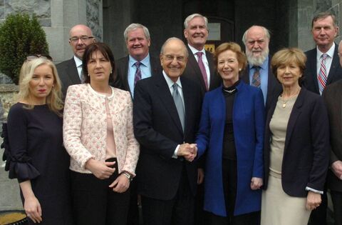 Former US Senator George Mitchell (front) and Canadian Ambassador Kevin Vickers (centre back) alongside members of the board of Victoria House Foundation at the Mary Robinson Centre's 4th International Human Rights Lecture in Ballina last week. Picture: Henry Wills Archive