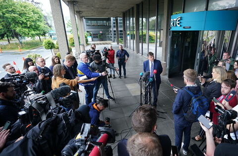 New RTE director general Kevin Bakhurst speaks to the media outside the broadcaster's headquarters in Donnybrook, Dublin, on July 10, 2023, amid the Ryan Tubridy scandal. Picture: Niall Carson/PA Wire
