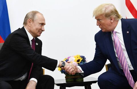 Donald Trump and Russia's President Vladimir Putin at the G20 summit in Osaka in 2019 during Trump's previous term as US President. Picture: Brendan Smialowski/AFP